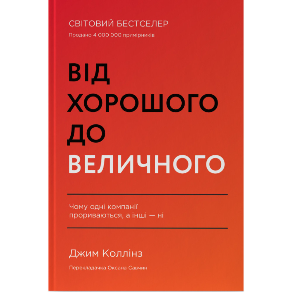 У цій книжці Джим Коллінз аналізує діяльність і структуру компаній, яким вдалося здійснити прорив у вищу лігу бізнесу. Він відібрав фірми, які, попри всі кризи, п'ятнадцять років поспіль показували найкращі результати у своїй галузі. Як Gillette, Kimberly-Clark, Philip Morris та іншим вдалося взяти настільки високу планку? Джим Коллінз вивів формулу — дев'ять кроків, які дозволять розкрутити маховик успіху до швидкості, яка приносить шалені прибутки.