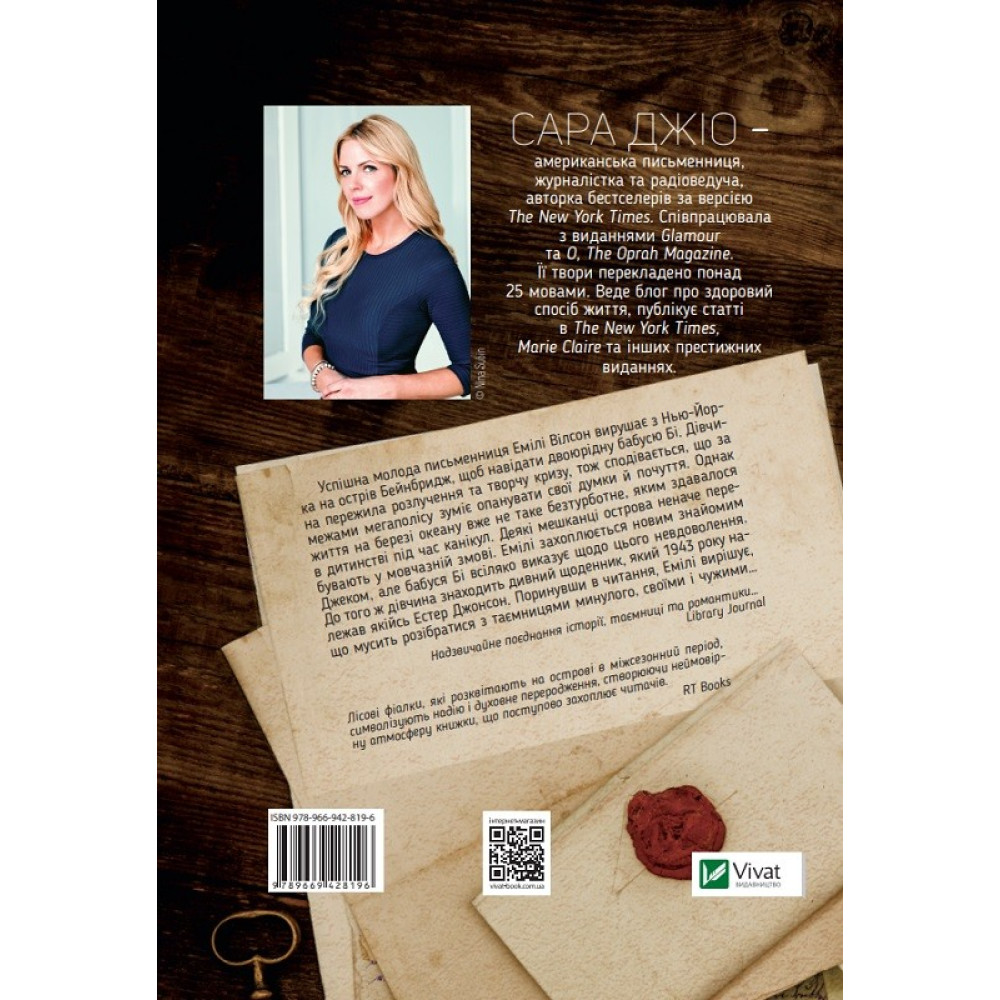 Успішна молода письменниця Емілі Вілсон вирушає з Нью-Йорка на острів Бейнбридж, щоб навідати двоюрідну бабусю Бі. Дівчина пережила розлучення та творчу кризу, тож сподівається, що за межами мегаполісу зуміє опанувати свої думки й почуття. Однак життя на березі океану вже не таке безтурботне, яким здавалося в дитинстві під час канікул. Деякі мешканці острова неначе перебувають у мовчазній змові. Емілі захоплюється новим знайомим Джеком, але бабуся Бі всіляко виказує щодо цього невдоволення.
