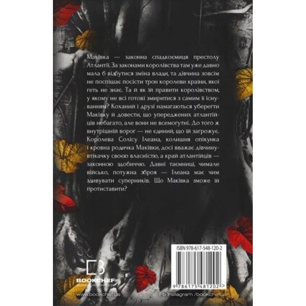 Маківка — законна спадкоємиця престолу Атлантії. За законами королівства там уже давно мала б відбутися зміна влади, та дівчина зовсім не поспішає посісти трон королеви країни, якої геть не знає. Та й як їй правити королівством, у якому не всі готові змиритися з самим її існуванням? Коханий і друзі намагаються уберегти Маківку й довести, що упереджених атлантійців небагато, але вони не всемогутні. До того ж внутрішній ворог — не єдиний, що їй загрожує. Королева Солісу Ілеана, колишня опікунка і кровна родичка Маківки, досі вважає дівчину-втікачку своєю власністю, а край атлантійців — законною здобиччю. Давні таємниці, чимале військо, потужна зброя — Ілеана має чим здивувати суперників. Що Маківка зможе їй протиставити?