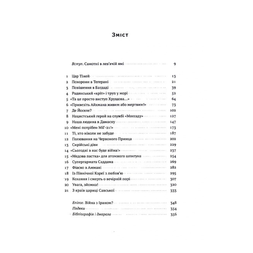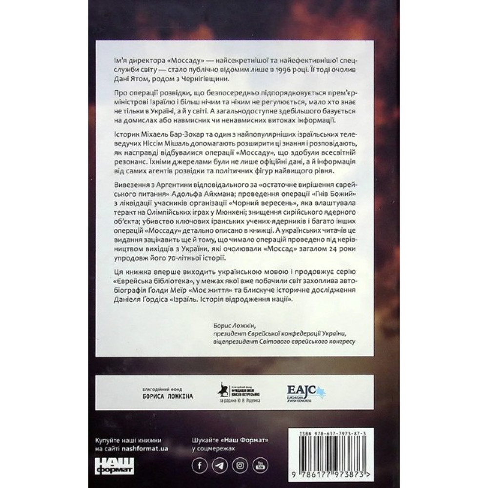 Ізраїльський «Моссад» відомий як одна з найефективніших спецслужб світу, попри коротку історію сучасного Ізраїлю. З яких коренів почало виростати це відомство ще до утворення Держави Ізраїль? Де межа між честю, фанатизмом та обов’язком? Чому не завжди варто покладатися навіть на найближчих союзників, і як навіть найкращі агенти та аналітики припускаються «дитячих» помилок? Автори цієї книги не ставлять перелічених запитань – та все ж дають докладну відповідь на них... і ще багато інших.
