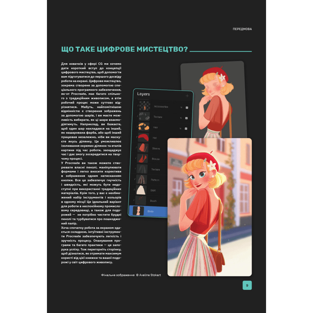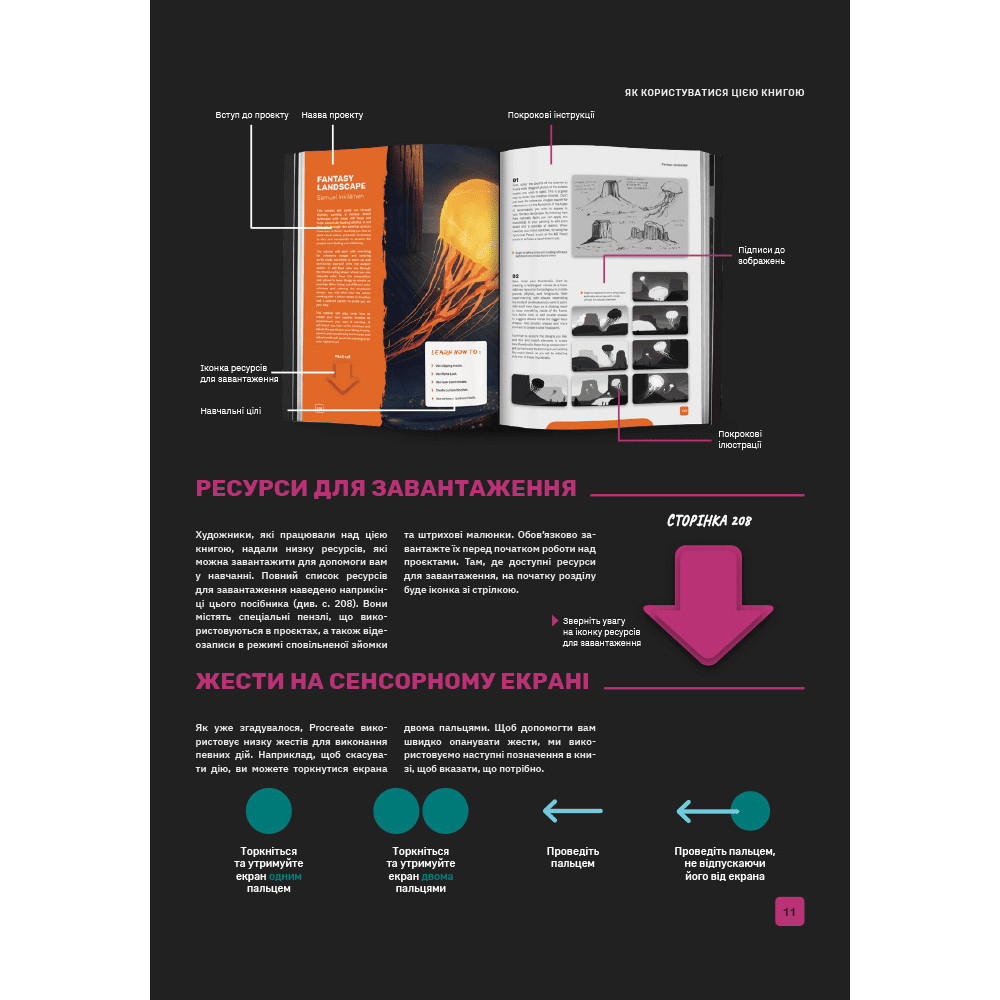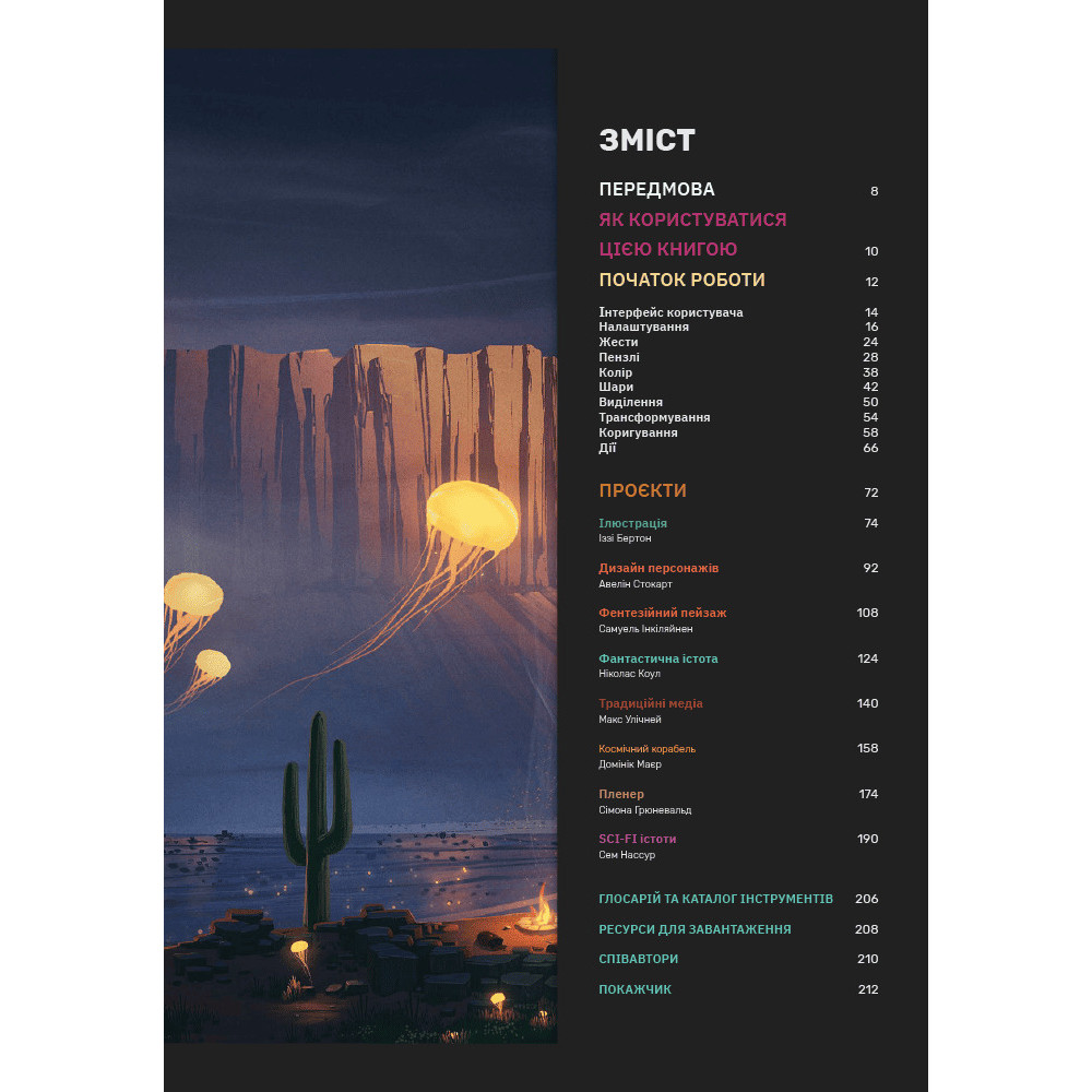 Завдяки зрозумілим покроковим інструкціям, практичним порадам і надихаючим прикладам, ви навчитеся створювати приголомшливі зображення, навіть якщо тільки починаєте свій шлях у малюванні. У книзі є розділи присвячені налаштуванням, жестам, роботі з шарами та кольором, дизайну персонажів, створенню фентезійного пейзажу, фантастичних істот та багато іншого. Крім того, ви тут знайдете безліч посилань та ресурсів для подальшого професійного розвитку. А завдання та вправи допоможуть закріпити отримані знання.