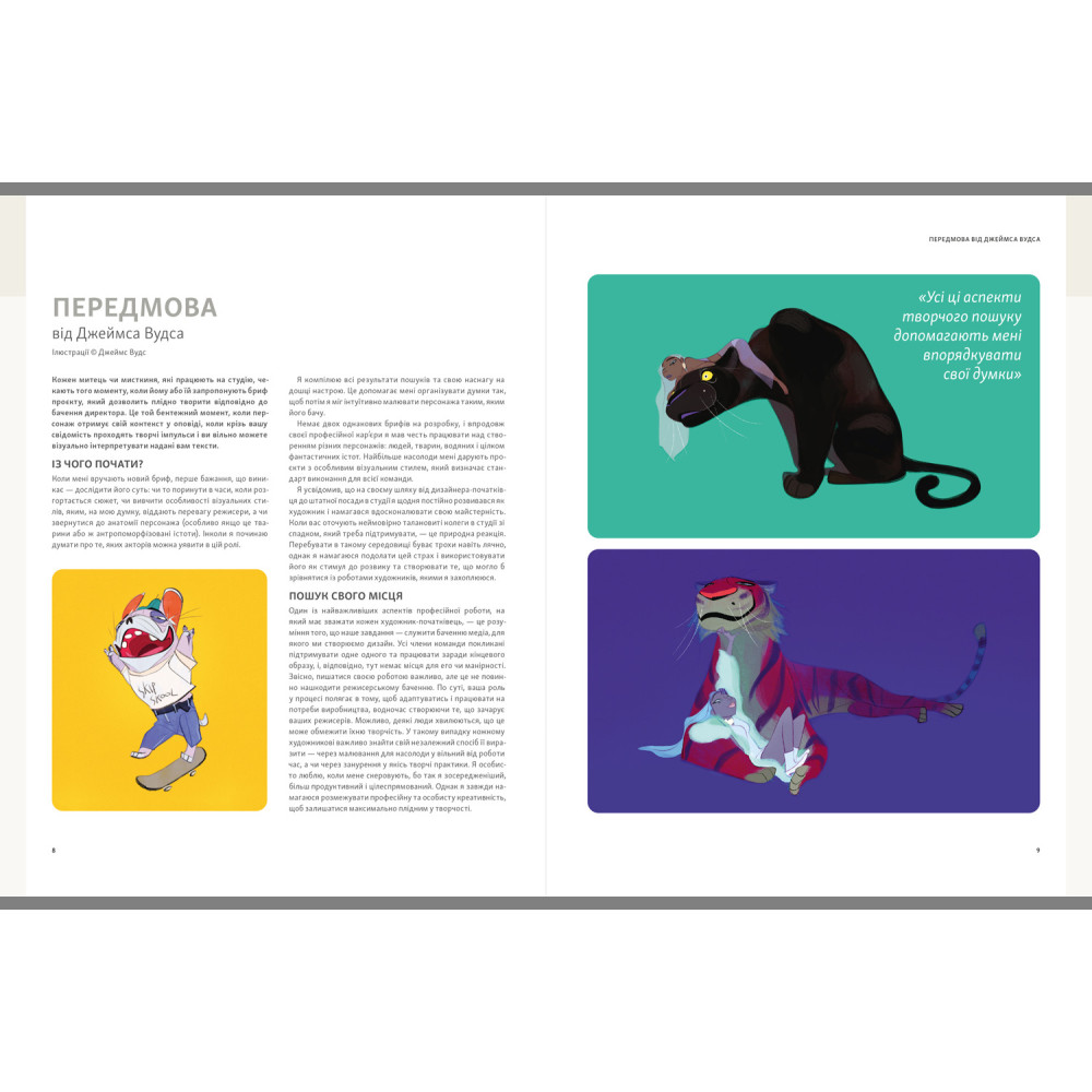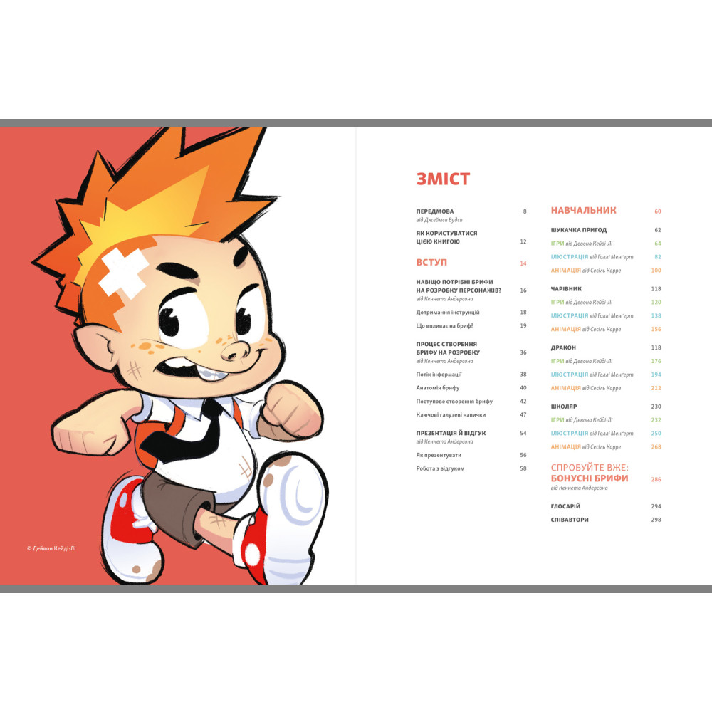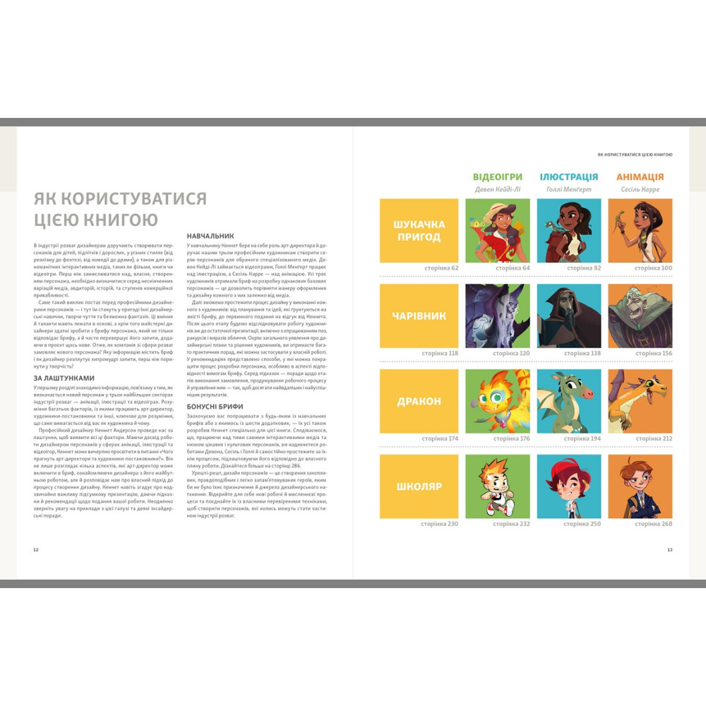 Тож запрошуємо за лаштунки індустрії мультфільмів, ілюстрації та відеоігор, де ви дізнаєтеся, як створюються брифи та розробляються персонажі! Ця книжка стане незамінною помічницею і для студентів, і для професійних дизайнерів. Автори зосередилися на тому, щоб навчити дизайнера пристосувати свою роботу до індивідуальних потреб аудиторії, до особливостей медіа, маркетингу та виробництва, — і попри визначені рамки створювати динамічних, яскравих та оригінальних персонажів.