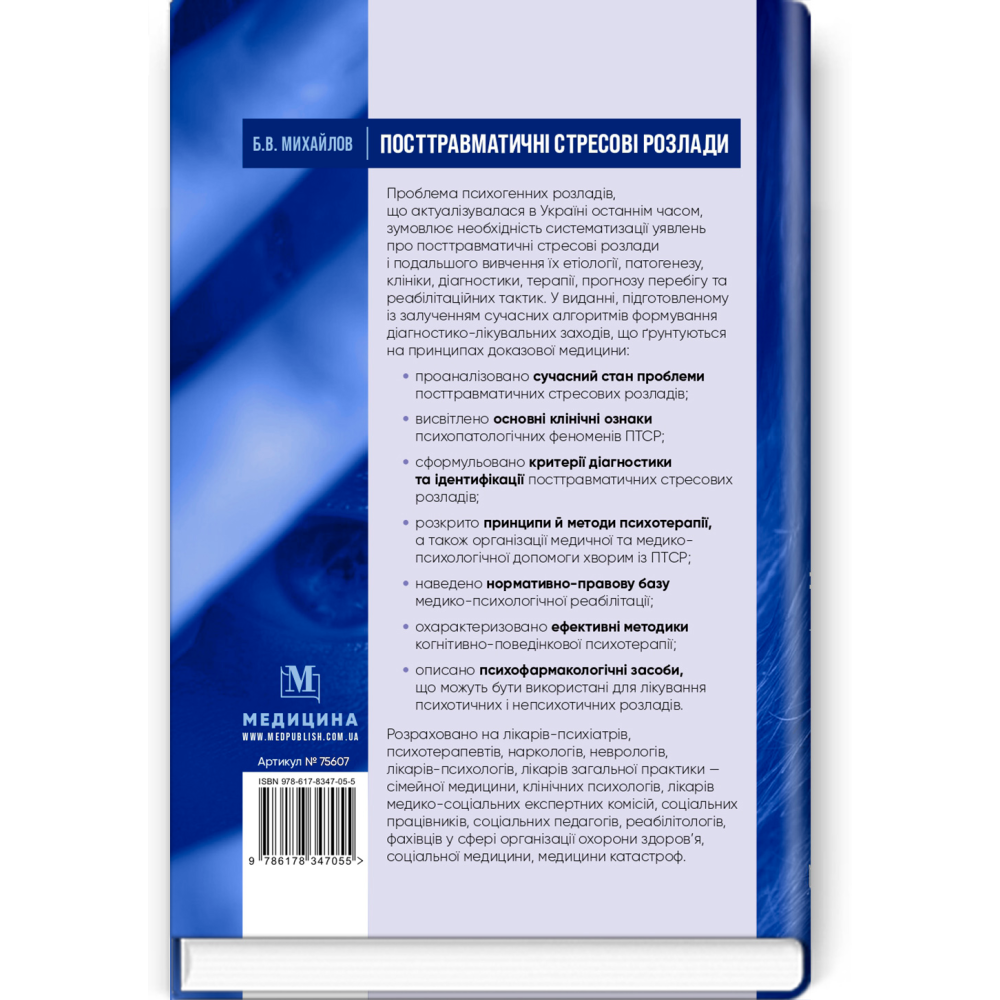 Проблема психогенних розладів, що актуалізувалася в Україні останнім часом, зумовлює необхідність систематизації уявлень про посттравматичні стресові розлади і подальшого вивчення їх етіології, патогенезу, клініки, діагностики, терапії, прогнозу перебігу та реабілітаційних тактик. У виданні, підготовленому із залученням сучасних алгоритмів формування діагностико-лікувальних заходів, що ґрунтуються на принципах доказової медицини: