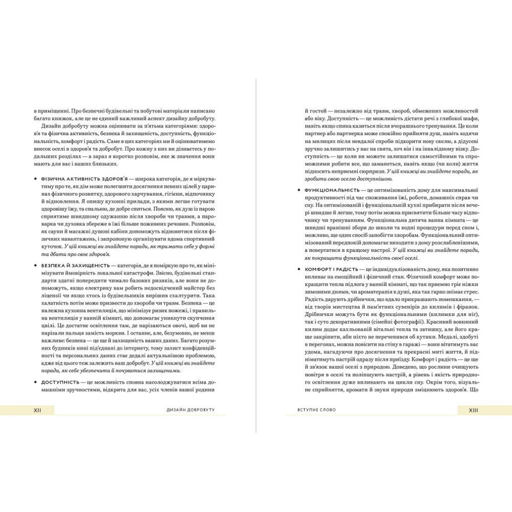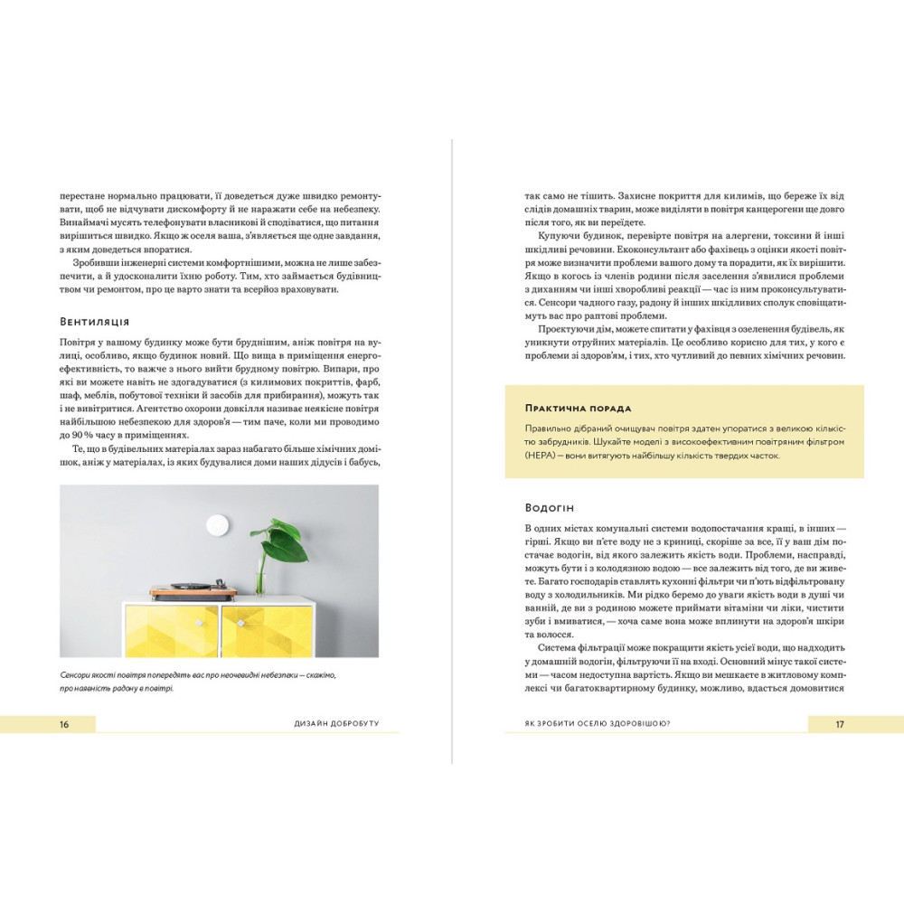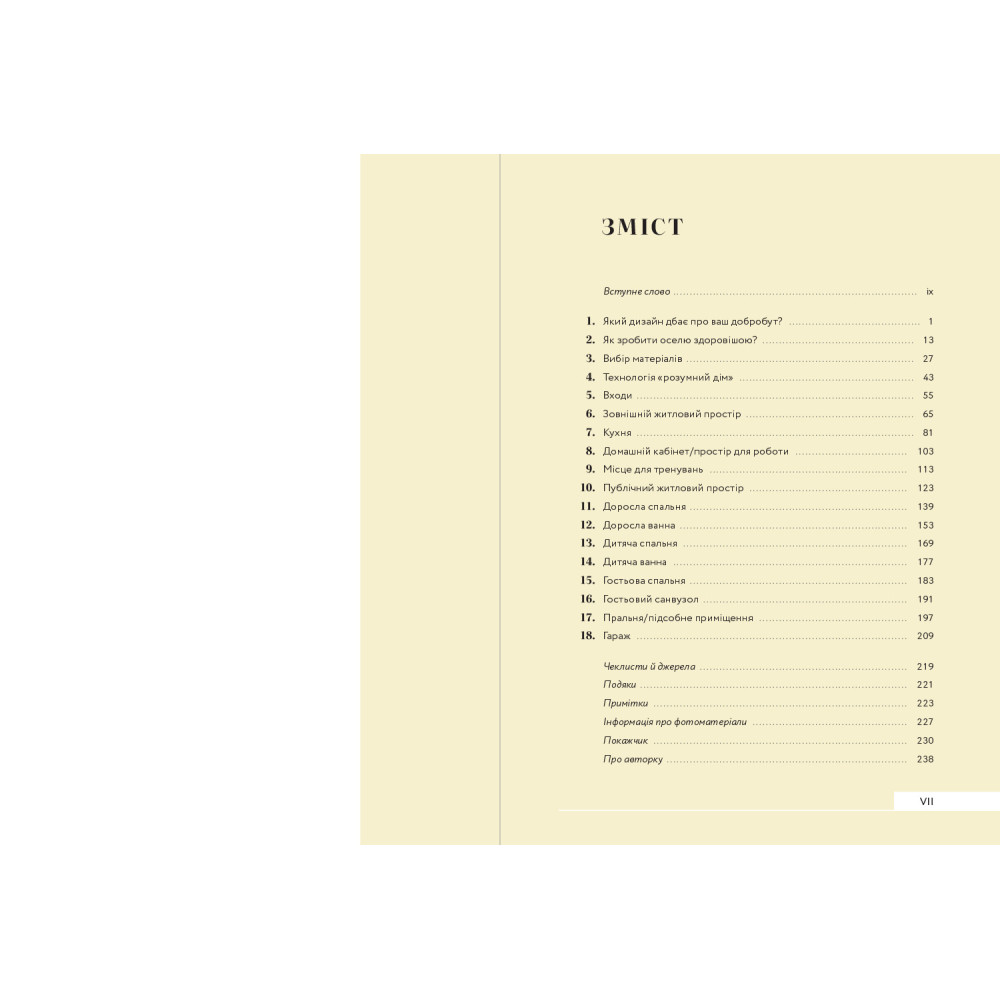 За умови правильної організації та дизайну інтер’єру ваша оселя може допомогти вам підтримувати та покращувати власне здоров’я різними способами, від посилення імунітету та запобігання хворобам до заохочення до правильного харчування, здорового життя, безпеки, затишку, спокою та радості. Ця книга пояснює, як прості зміни можуть змінити ваше самопочуття протягом дня. Зокрема, ви дізнаєтесь: