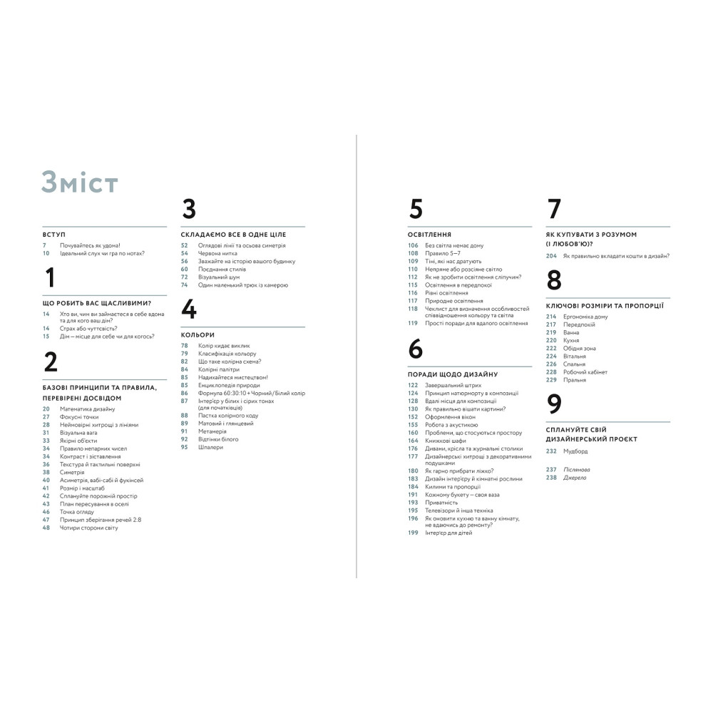 Довідник з дизайну інтер’єру навчить вас загальним правилам створення гармонійного життєвого простору. Наприклад, яким є золотий перетин та золота спіраль, правильний розмір журнального столика щодо вашого дивана, оптимальна висота для підвішування освітлювальних приладів та найкращі способи використання «дошки настрою». Все це супроводжується корисними і переконливими ілюстраціями. Використовуйте цей практичний посібник з дизайну інтер’єру, щоб в результаті отримати збалансований, красивий будинок чи квартиру, незалежно від того, де ви живете або який ваш особистий стиль.