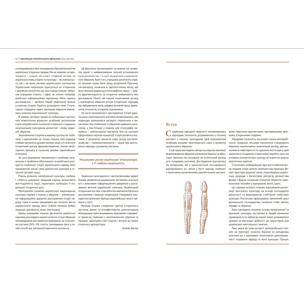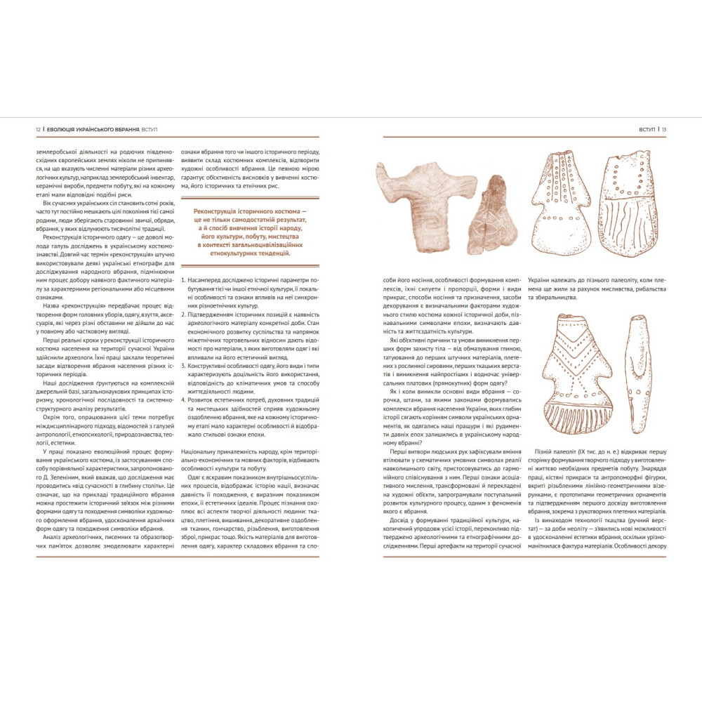 Історія українського вбрання налічує не одне тисячоліття. Ще за сивої давнини наш народ створював самобутні зразки одягу, взуття й аксесуарів, що втілилися в подальших варіантах традиційного костюма. У різні часи на різних теренах українське вбрання розвивалося по-своєму, збагачувалося оригінальними рисами, притаманними населенню тієї чи іншої місцевості, всотувало досвід і естетику різномантних культур. Історія вбрання невіддільна від історії народу, від його психологічних, естетичних, духовних прагнень, невичерпного творчого потенціалу.