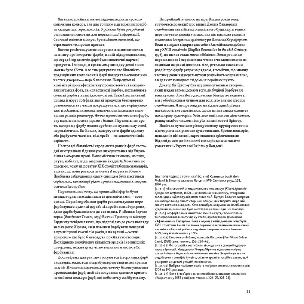 Репродукції інтер’єрів із книг про домашній декор, що датуються різними епохами, включені у кожен розділ, підкреслюючи колірні тенденції та стилі живопису, характерні для кожного періоду.