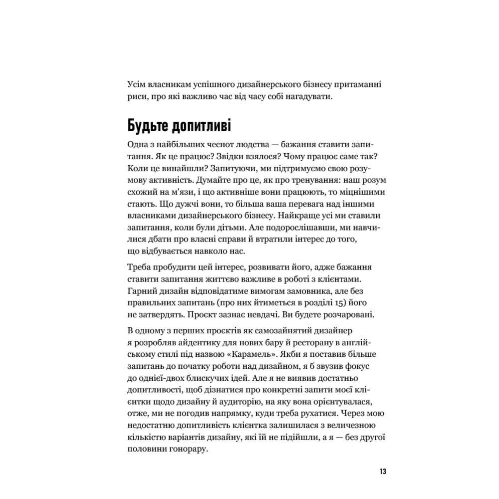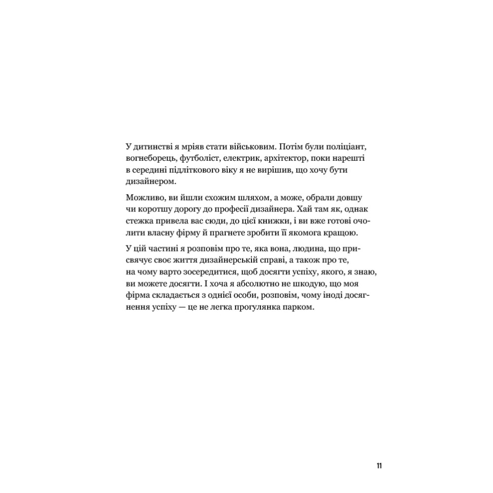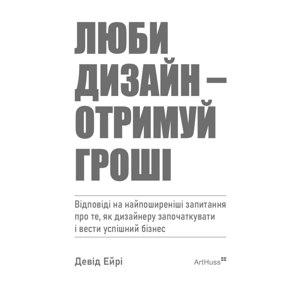 Цей цікавий і щирий посібник із порадами від автора книжки «Лого. Дизайн. Любов», дизайнера Девіда Ейрі дає відповіді на запитання, як започаткувати і вести власний бізнес у галузі дизайну. На написання книжки Девіда надихнули численні запитання від понад 600 тисяч дизайнерів, які щомісяця читають три його блоги: Logo Design Love, Identity Designed та DavidAirey.com.