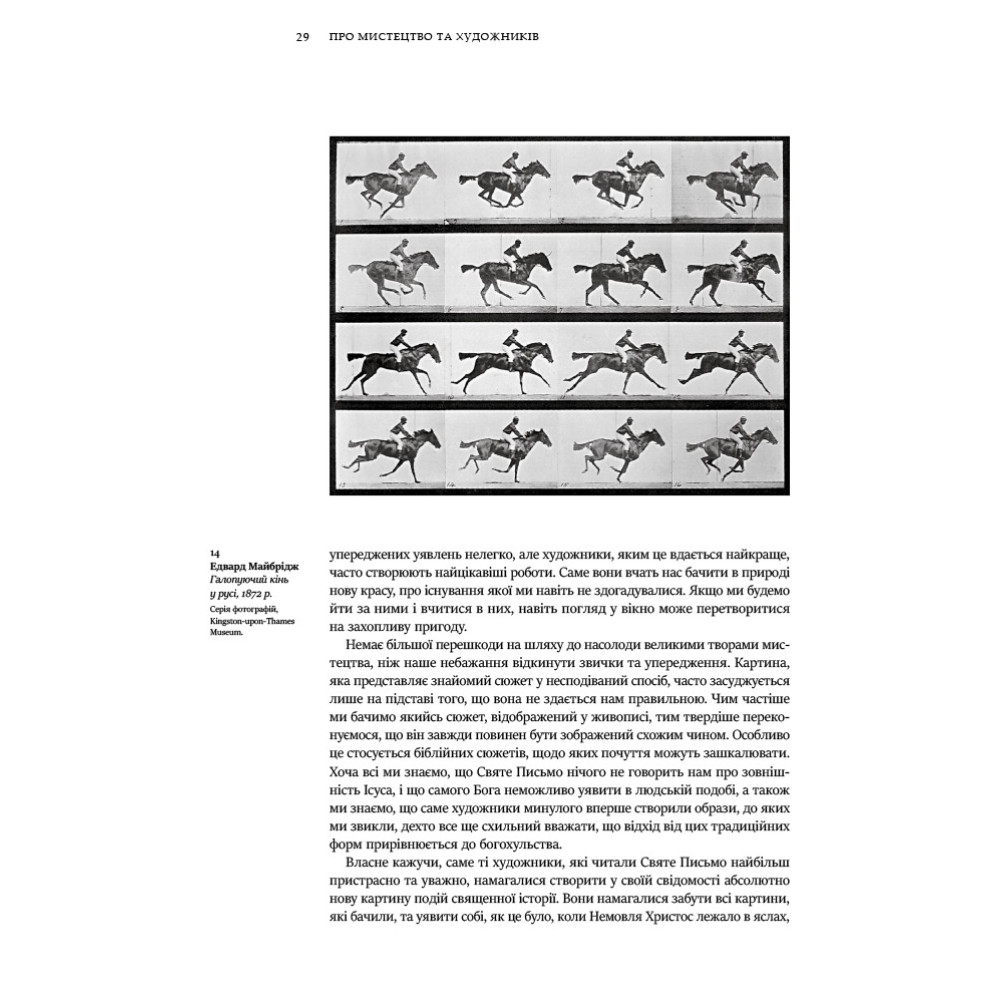 Навряд чи існує у світі багато книжок про мистецтво, які б витримали 16 перевидань, і просто незлічену кількість перекладів практично на всі мову світу, до яких, нарешті, долучилася й українська. Тож книга професора Ернcта Ґомбріха б’є всі рекорди завдяки унікальному підходу автора, який вирішив написати не стандартну академічну сухувату історію мистецтва з купою дат і персоналій, погано відомих навіть фахівцям, а захопливу розповідь, яка читається як роман. Саме тому він назвав свою книгу “Оповіддю”, а не “Історією”, хоча вона містить широкий огляд мистецтва від давніх часів до сьогодення.