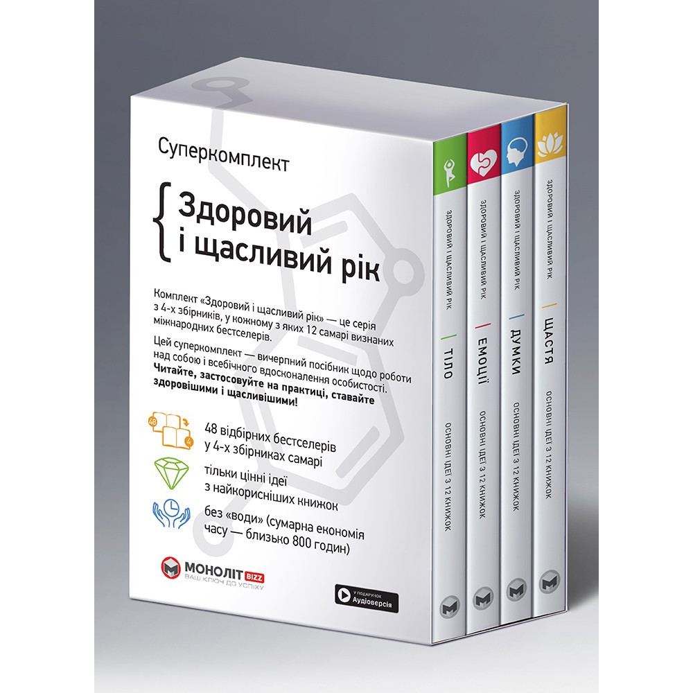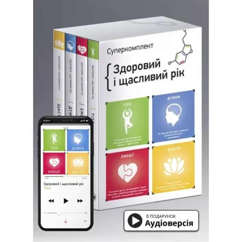 Комплект «Здоровий і щасливий рік» — це 4 збірки самарі, які допоможуть вам змінити протягом року своє тіло, думки, емоції та взаємодію зі світом. Ви вийдете на новий рівень усвідомлення свого «Я», та побачите шляхи до самовдосконалення.