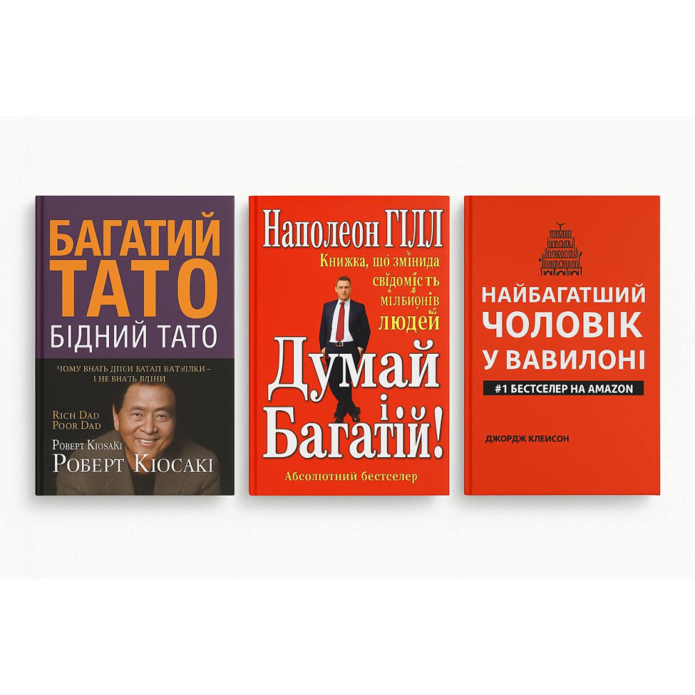 Богатый папа, бедный папа (мягкая) + Думай и богатый (мягкая) + Самый богатый мужчина в Вавилоне (мягкая).